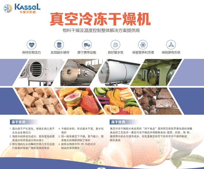 卡塞爾機械(浙江)有限公司為卡塞爾集團成員企業(yè),是一家專業(yè)提供真空冷凍干燥設(shè)備整體方案的供應(yīng)商:以“凍干機”為核心產(chǎn)品,形成了針對果蔬、肉類(寵物食品)、速溶方便食品(凍干粉)、美容及生物制品、實驗室凍干、家用凍干及其它等七大凍干產(chǎn)品生產(chǎn)線的針對性解決方案,讓低成本、高效率、多用途的一站式凍干服務(wù)成為可能。